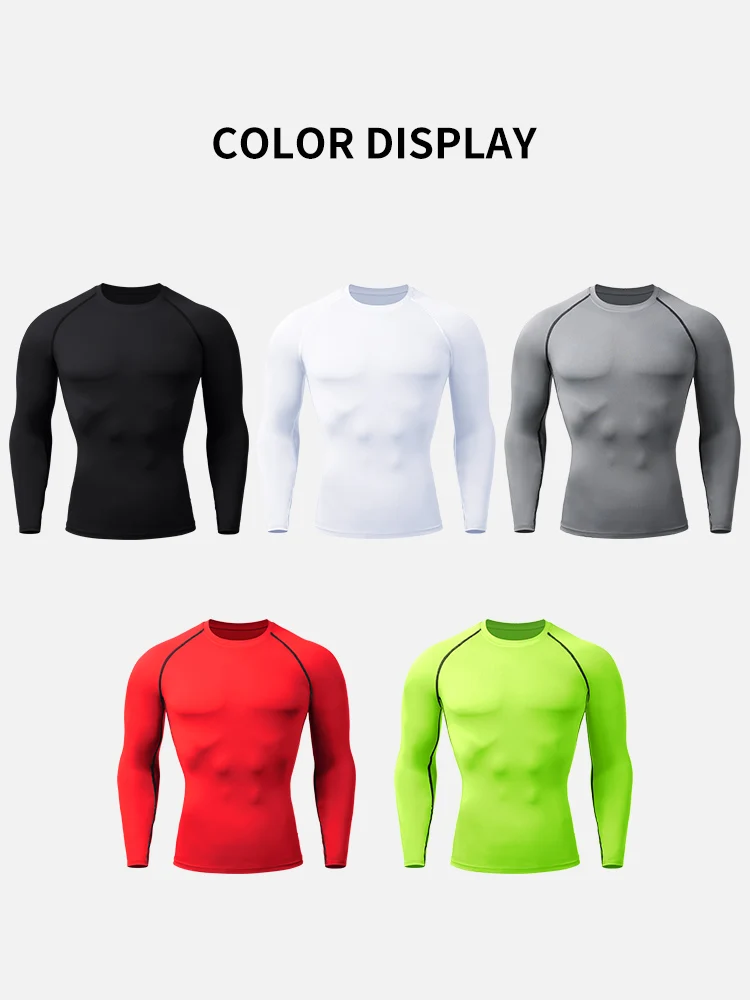 Compression Shirts Men'S Rashguard Quick Dry Gym Fitness Shirts Spring Beach Surfing Athletic Sport Running Workout Tops Tees